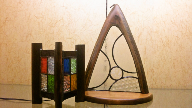 昔懐かしい家具や、現代家具にステンドグラスをはめ込ん だ灯りや置物!