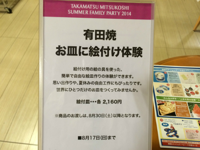 8月5日(火)~17日(日)まで高松三越5階台所用品売り場にて有田焼の器に絵付けをする絵付け体験会を開催致します。