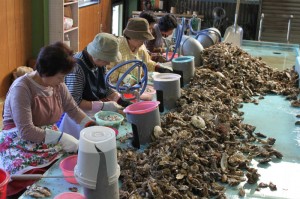 作業場では、みなさん忙しそうに牡蠣うち作業(牡蠣の殻を開いてむき身の状態にする)をされていました。