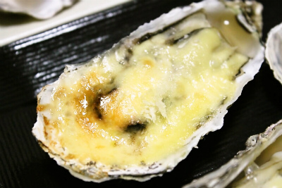 殻を開けたカキの身の上に、マヨネーズ、しょうゆちょびっと(ほんの2~3滴でいいと思います)その上にとろけるチーズを乗っけて、