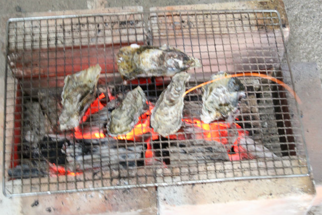 窯焼きピザと、牡蠣の作業所でGetした朝採れたての牡蠣を炭火で焼いていただきました。